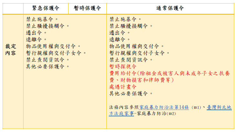 家庭暴力防治法第14條 (註3) ,臺灣新北地方法庭家事-家庭暴力防治(註4)